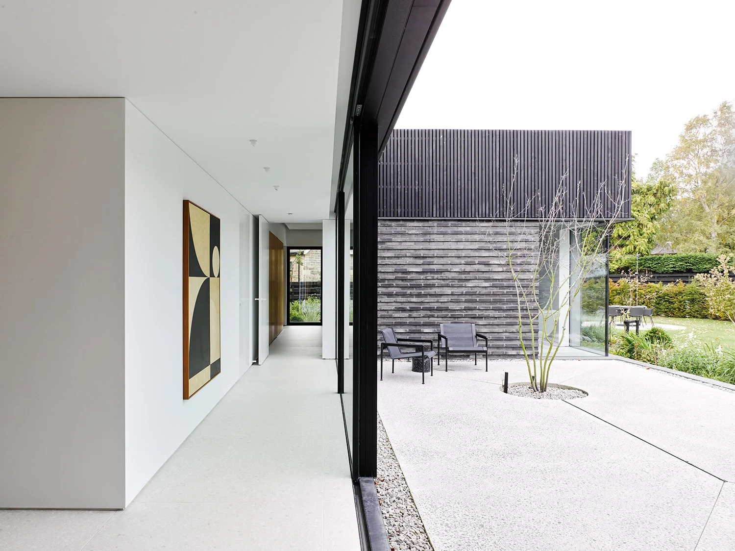 Planners dictated that the new building be no higher than the original roofline. However, given the clients’ brief for a flat roof, this meant the ceilings could be pushed a lot higher, resulting in a lofty 3.2m ceiling. Mindful of external elevations, proportions were carefully considered to achieve the correct balance between solid and void. The glazing head is reduced creating a strong datum line around the building.